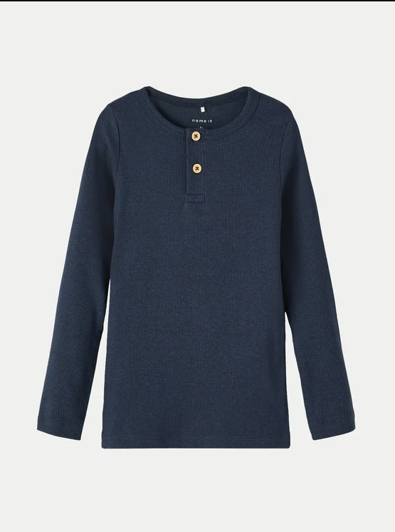 Bluză cu nasturi din bumbac organic şi modal, Name It, culoare dark blue