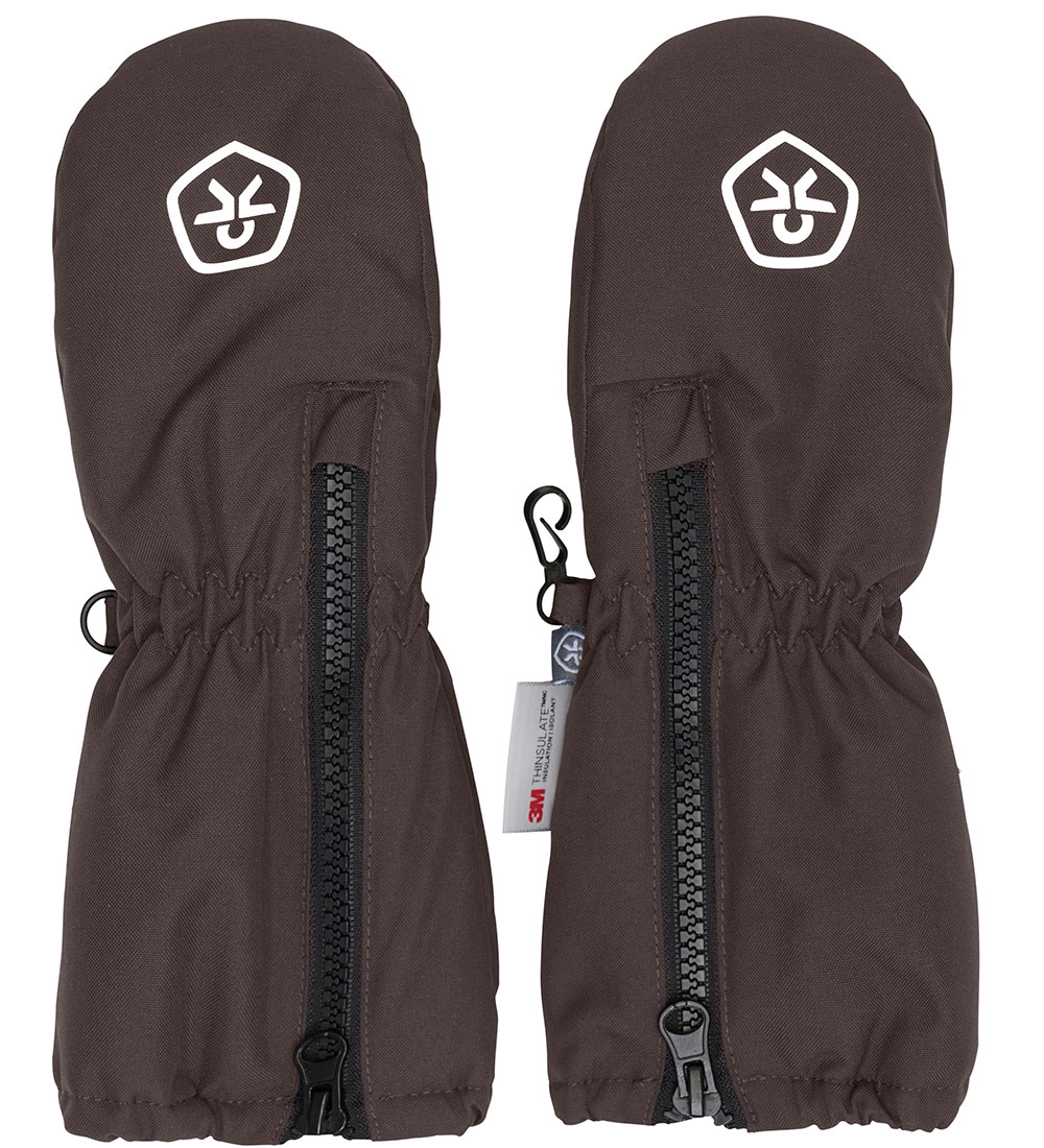 Mănuși impermeabile de iarnă, Color Kids, culoare maro închis cu o tentă mov și detalii negre.