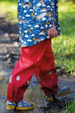Splish! Splash! Pantalonii Frugi Puddle Buster sunt numai buni pentru a-i menține pe micuți uscați în timpul aventurilor din zilele ploioase (mai ales pentru săriturile în bălți pe care cei mici pur și simplu le adoră).